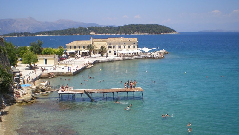 Faliraki is where Corfiots have traditionally taken their “baths” from old, a place better known among them as “Aleko’s baths”. One must walk from town through the St Nicholas gate (which allowed access to the sea in Venetian times). Swimmers sit on the short quay or lie on recliners provided by the barsnearby. Stone steps lead into the water.